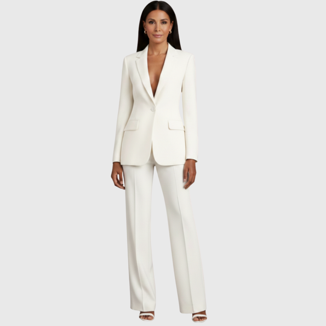 CONJUNTO DE TRAJE FORMAL PARA MUJER CON BLAZER LARGO ESTRUCTURADO Y PANTALÓN RECTO