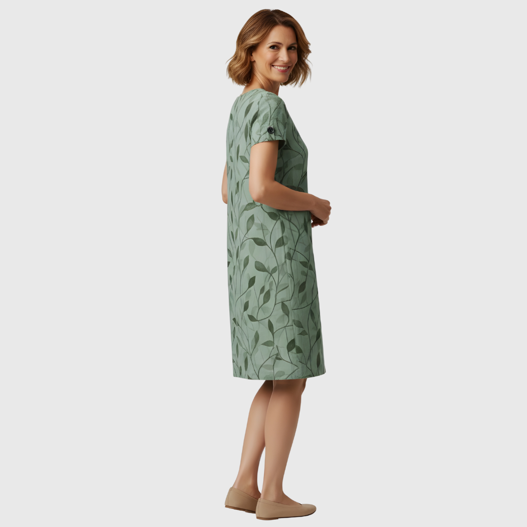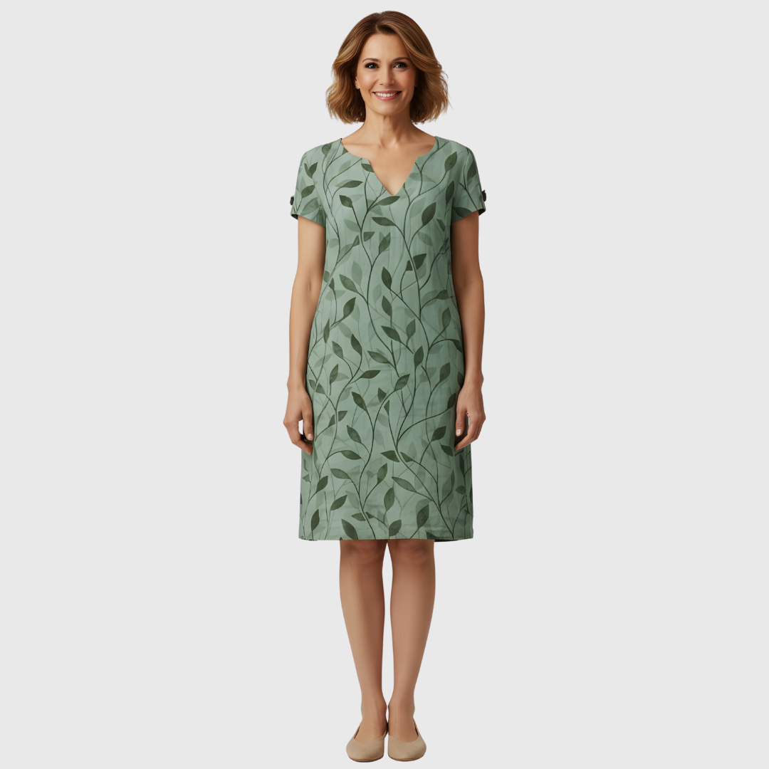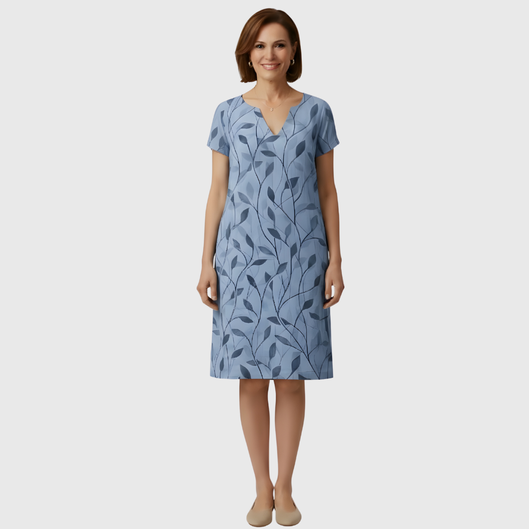 Este vestido floral de corte recto presenta una silueta sencilla y equilibrada, pensada para el uso diario en temporadas cálidas. Su diseño limpio y el largo midi ofrecen una apariencia cuidada, adecuada tanto para actividades cotidianas como para encuentros informales.