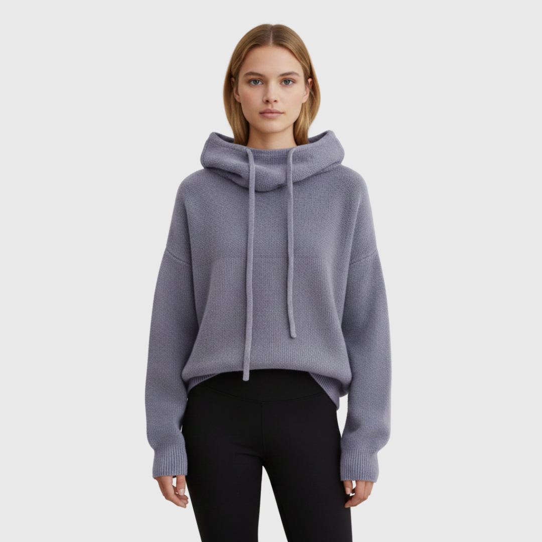 Sudadera para mujer con capucha integrada, corte oversize y manga larga. Presenta un cuello alto y una estructura amplia que permite utilizar distintas prendas interiores según la preferencia de la persona usuaria. Su diseño continuo facilita la combinación con conjuntos variados en actividades diarias.