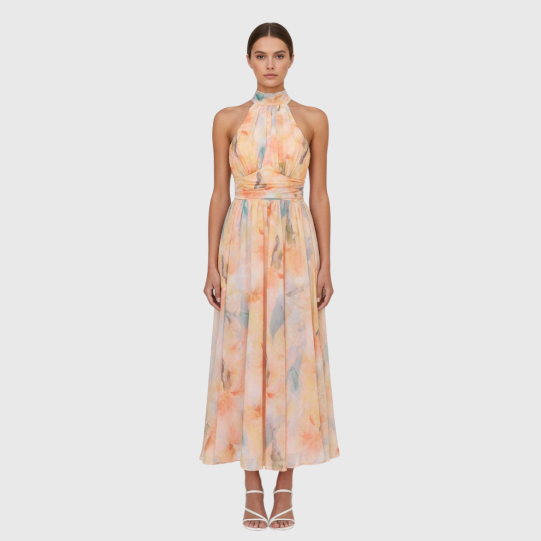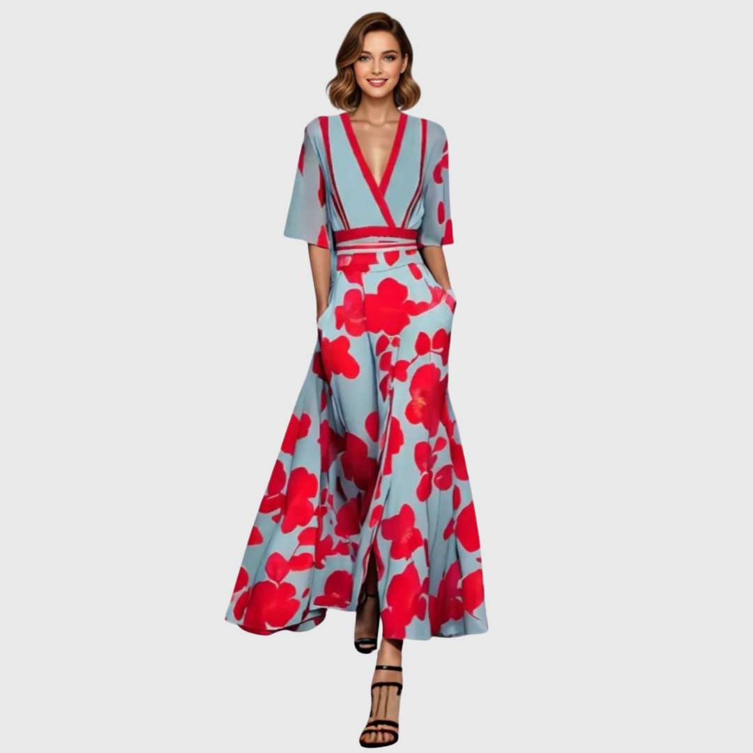 VESTIDO LARGO DE NOCHEVIEJA PARA MUJER | ESTAMPADO FLORAL & ESCOTE EN V | MAXI