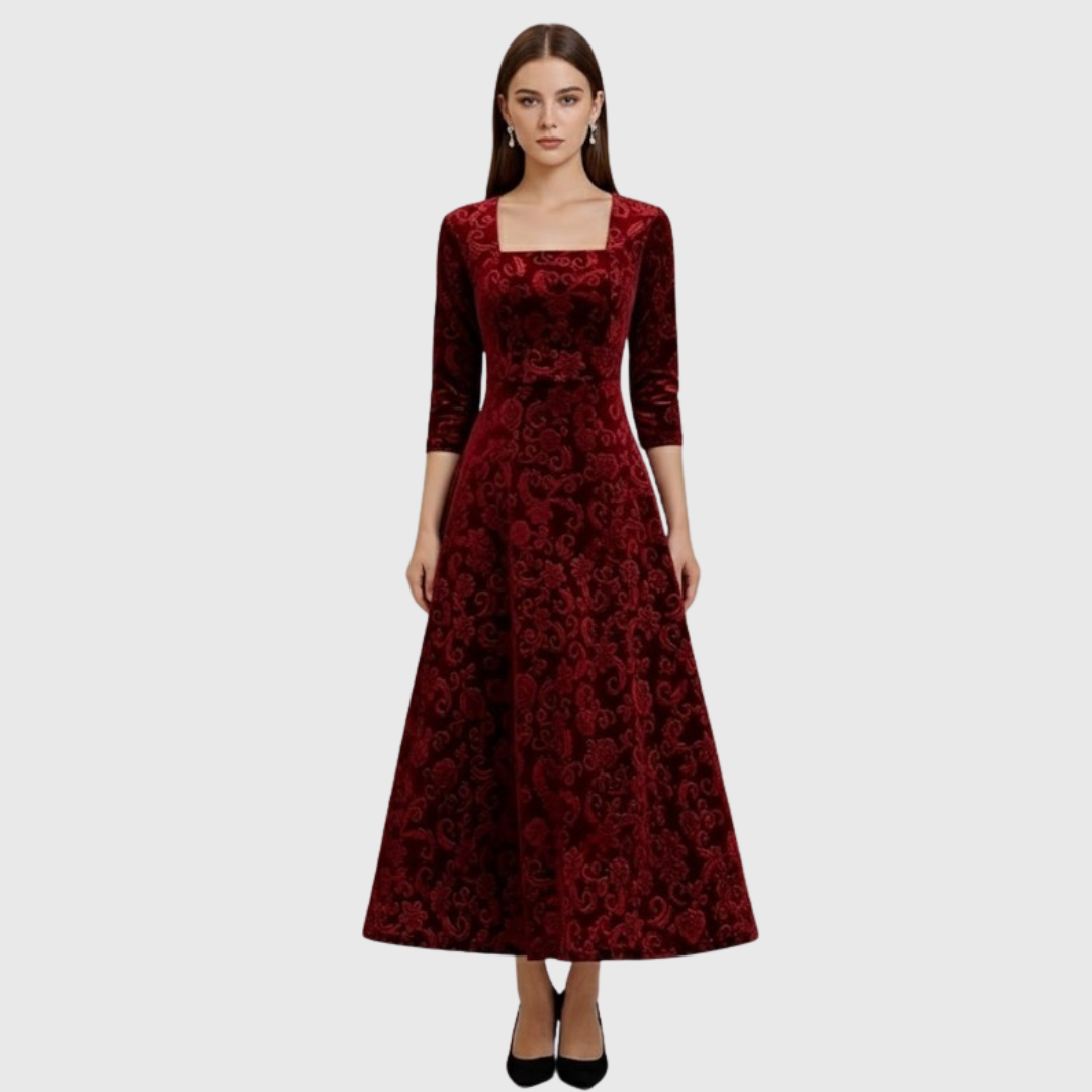 VESTIDO DE FIESTA CON CUELLO CUADRADO PARA MUJER | MIDI