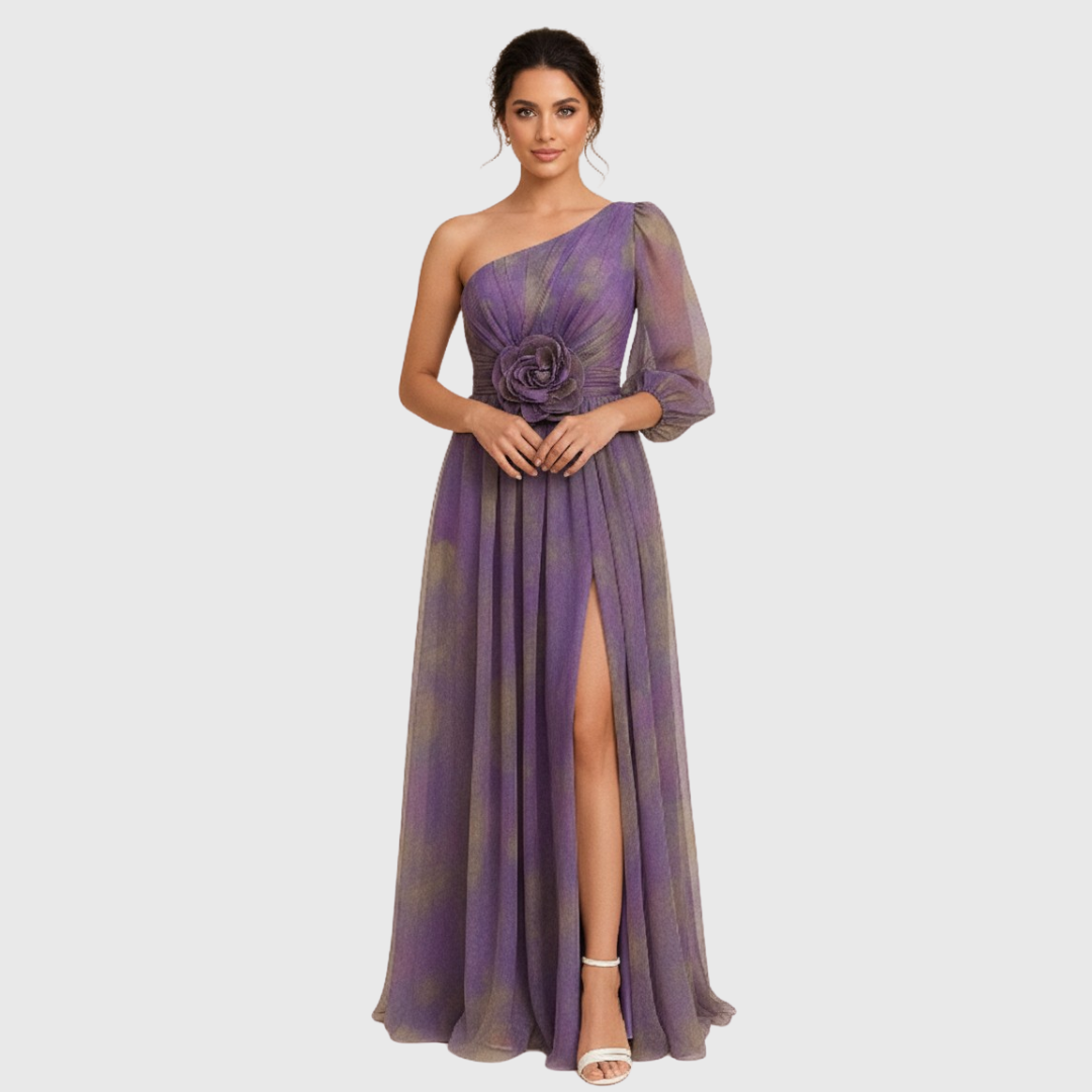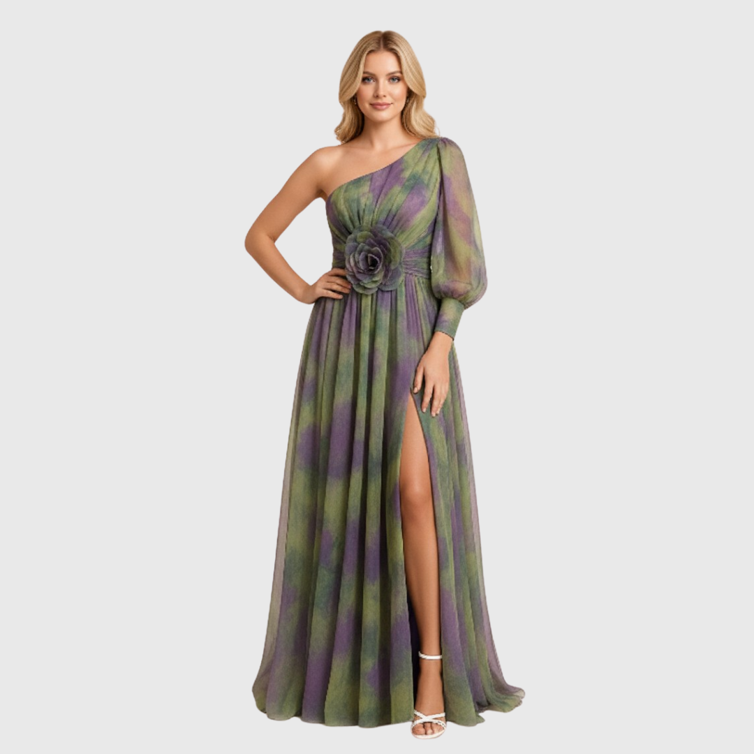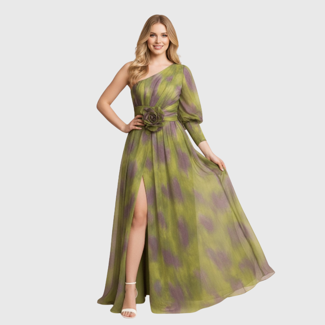 Vestido de Invitada de Boda | Un Hombro y Abertura Lateral | Maxi