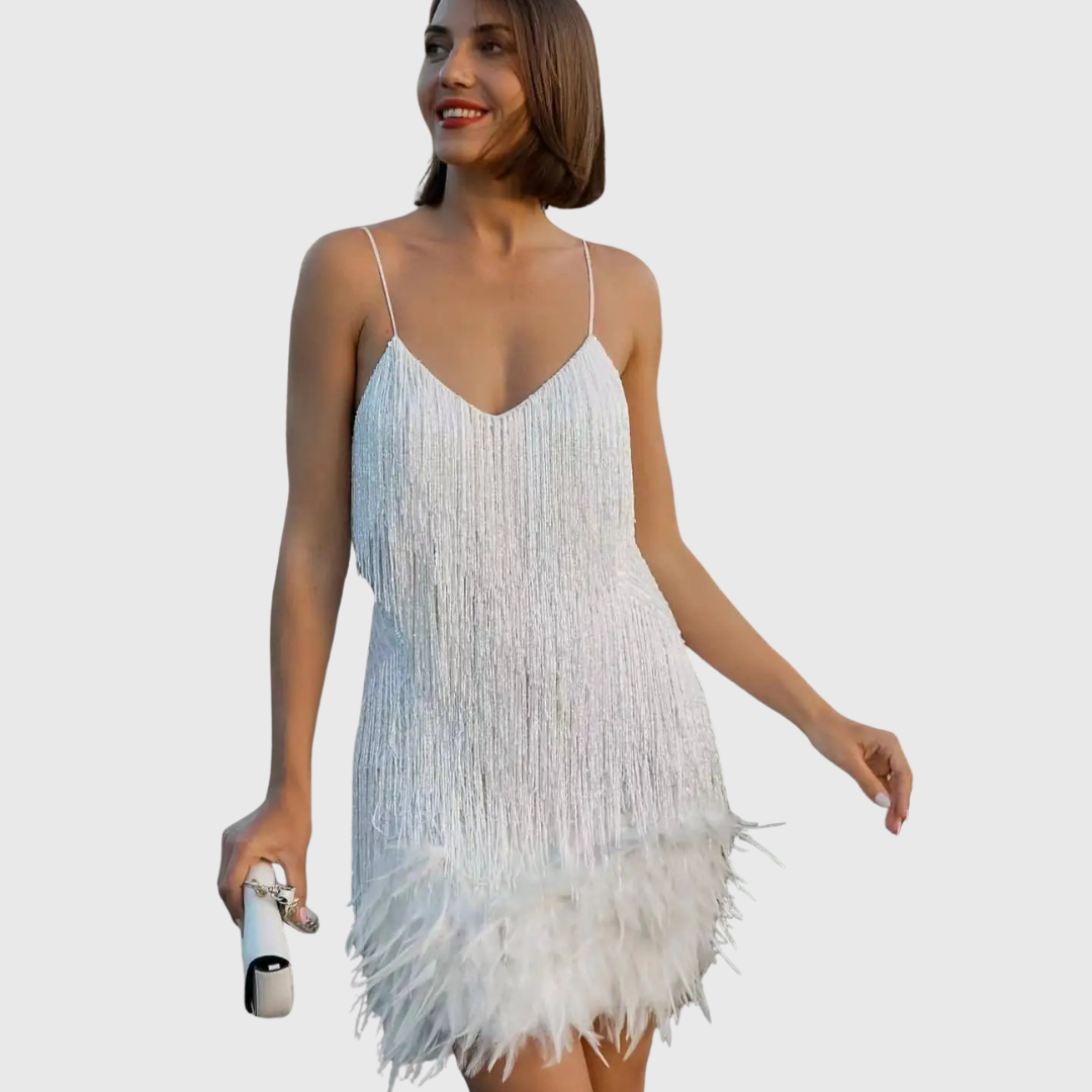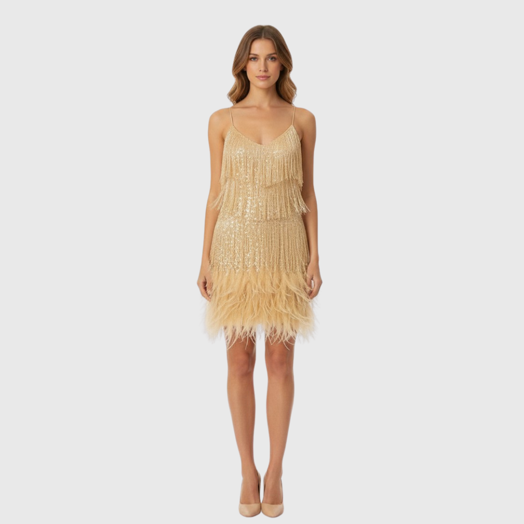 Vestido de Nochevieja con Lentejuelas y Flecos de Plumas para Mujer | Mini