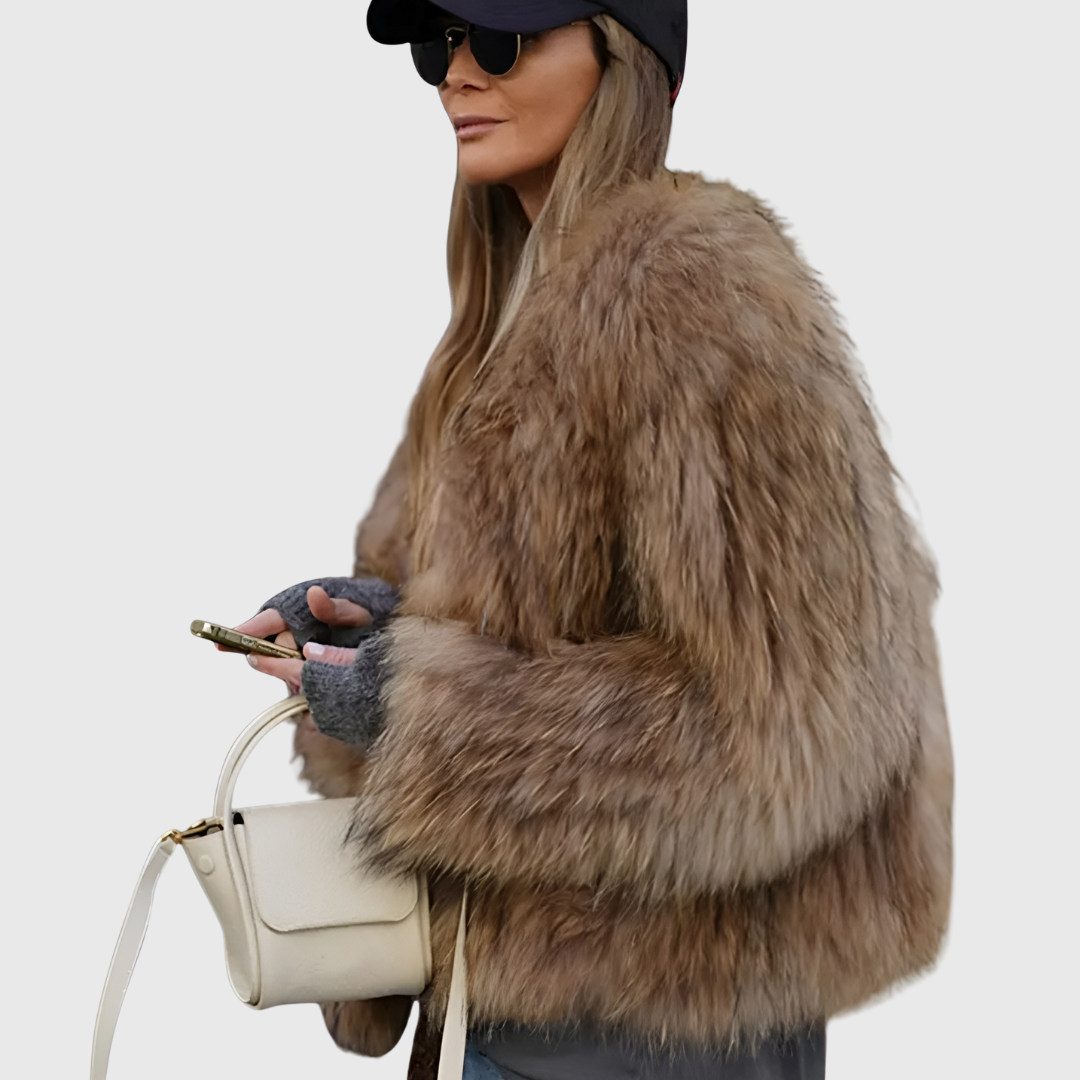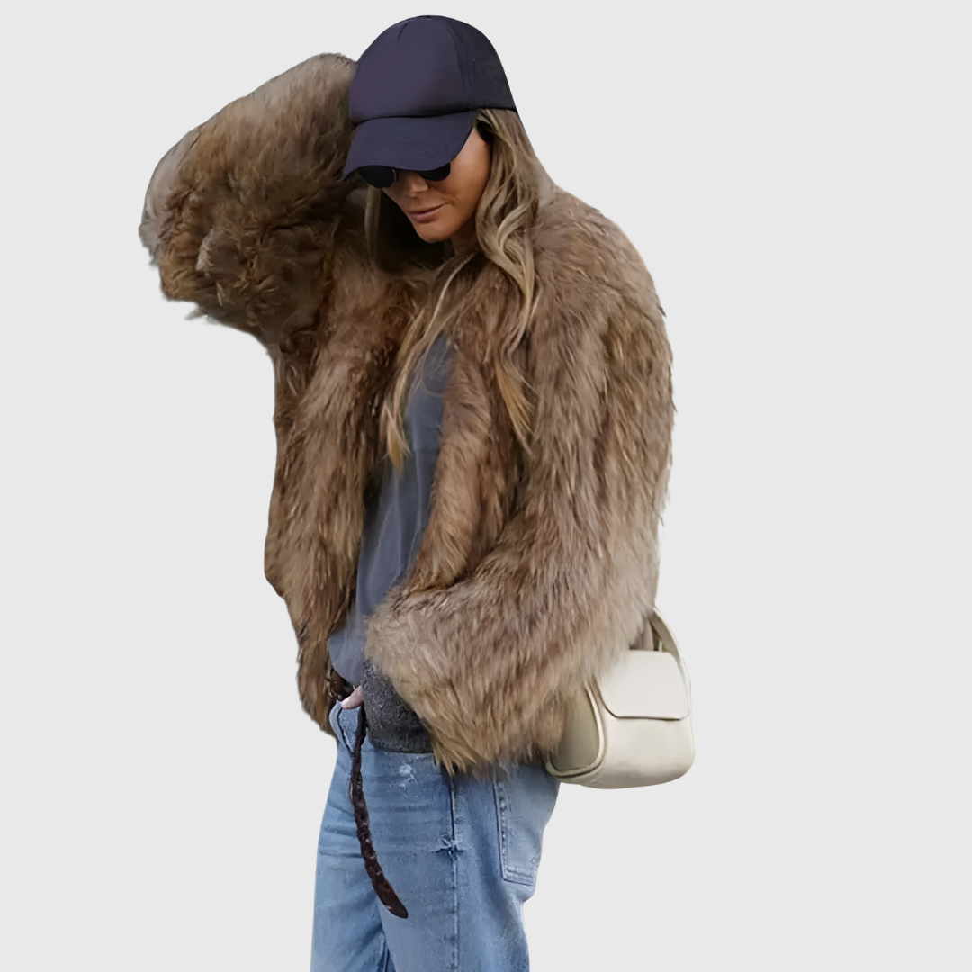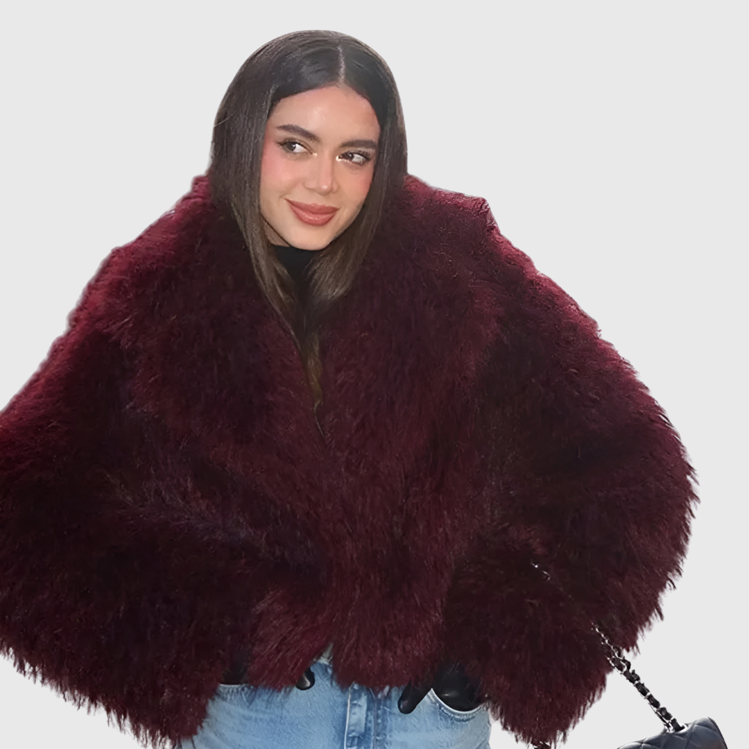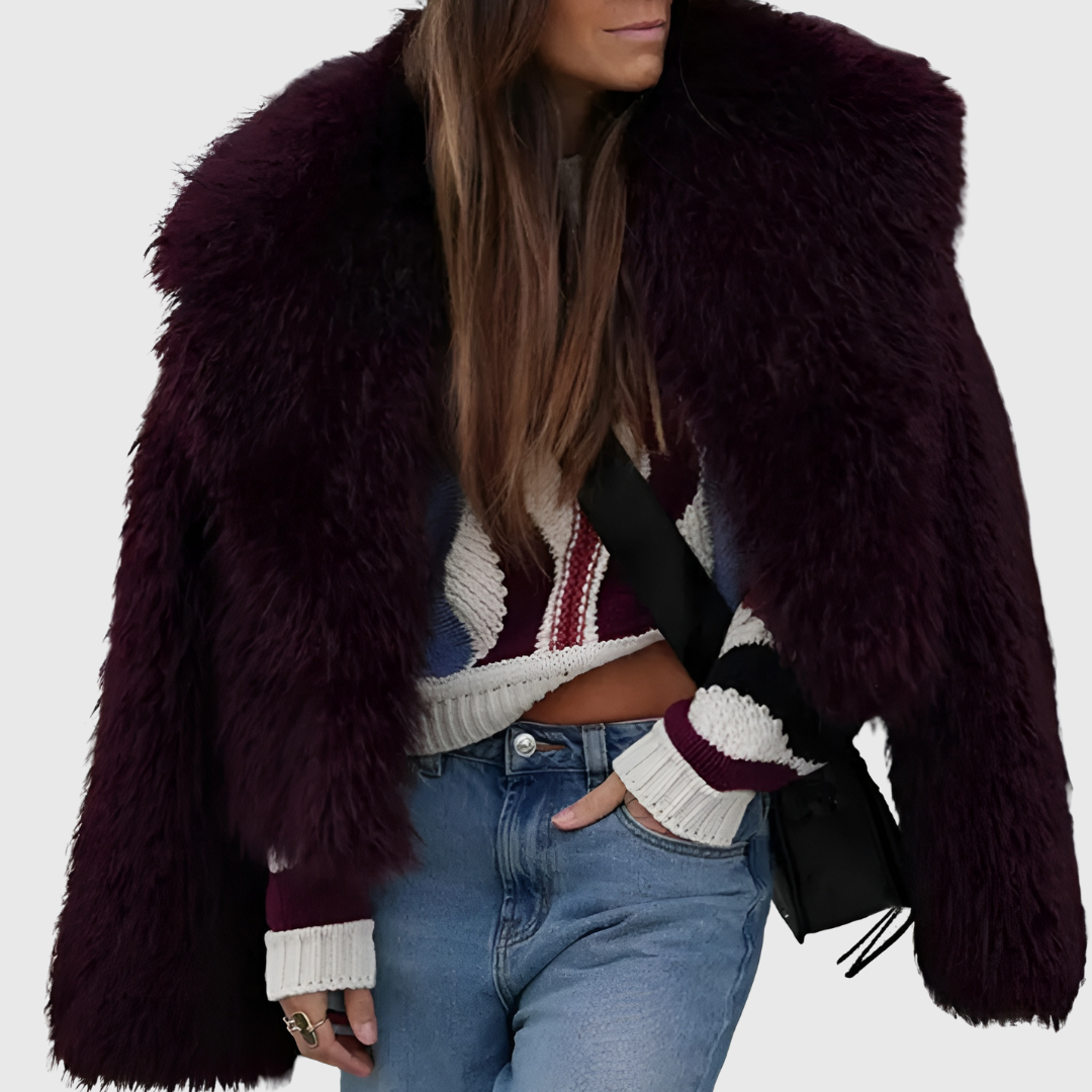 El abrigo de invierno para mujer con cuello vuelto combina un diseño actual con textura suave.