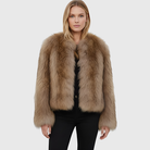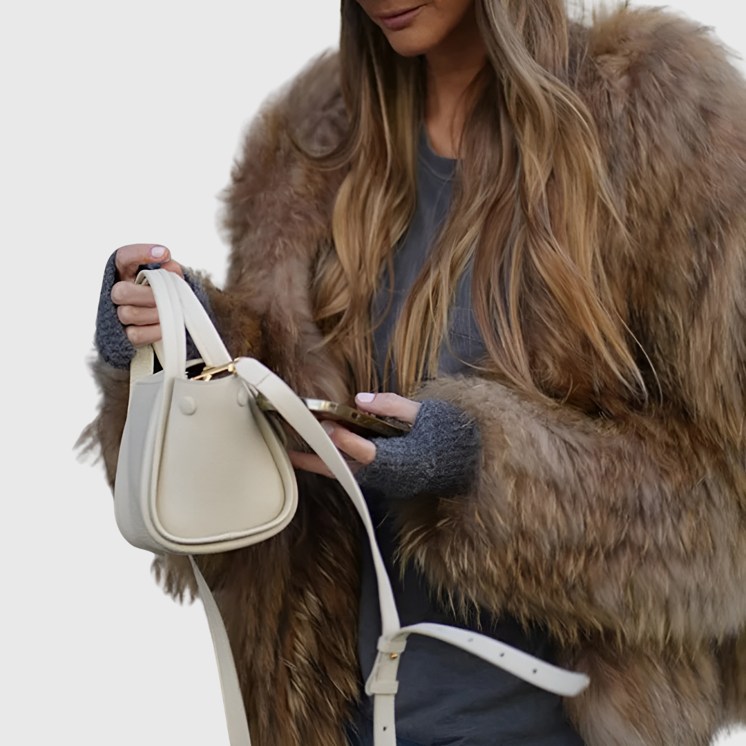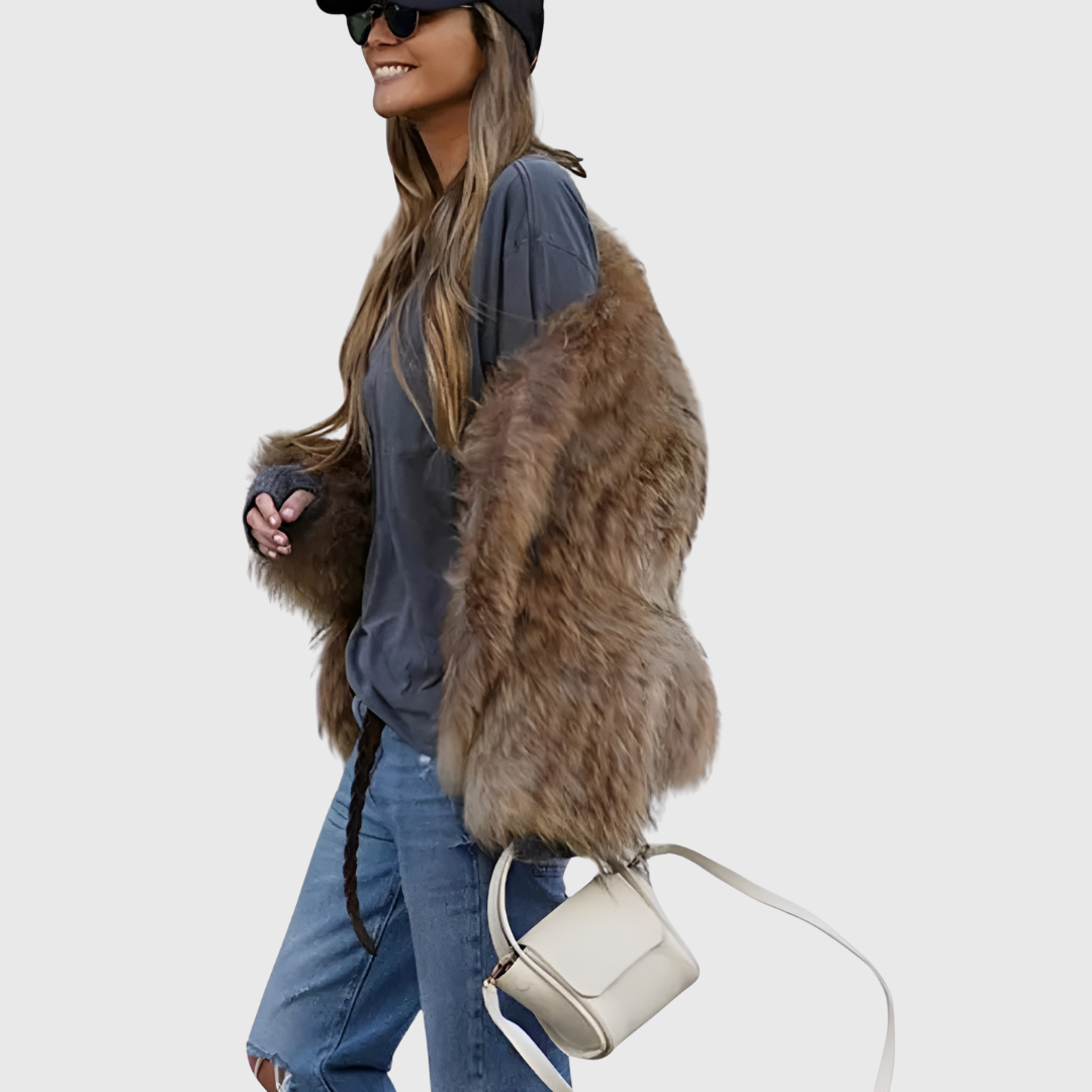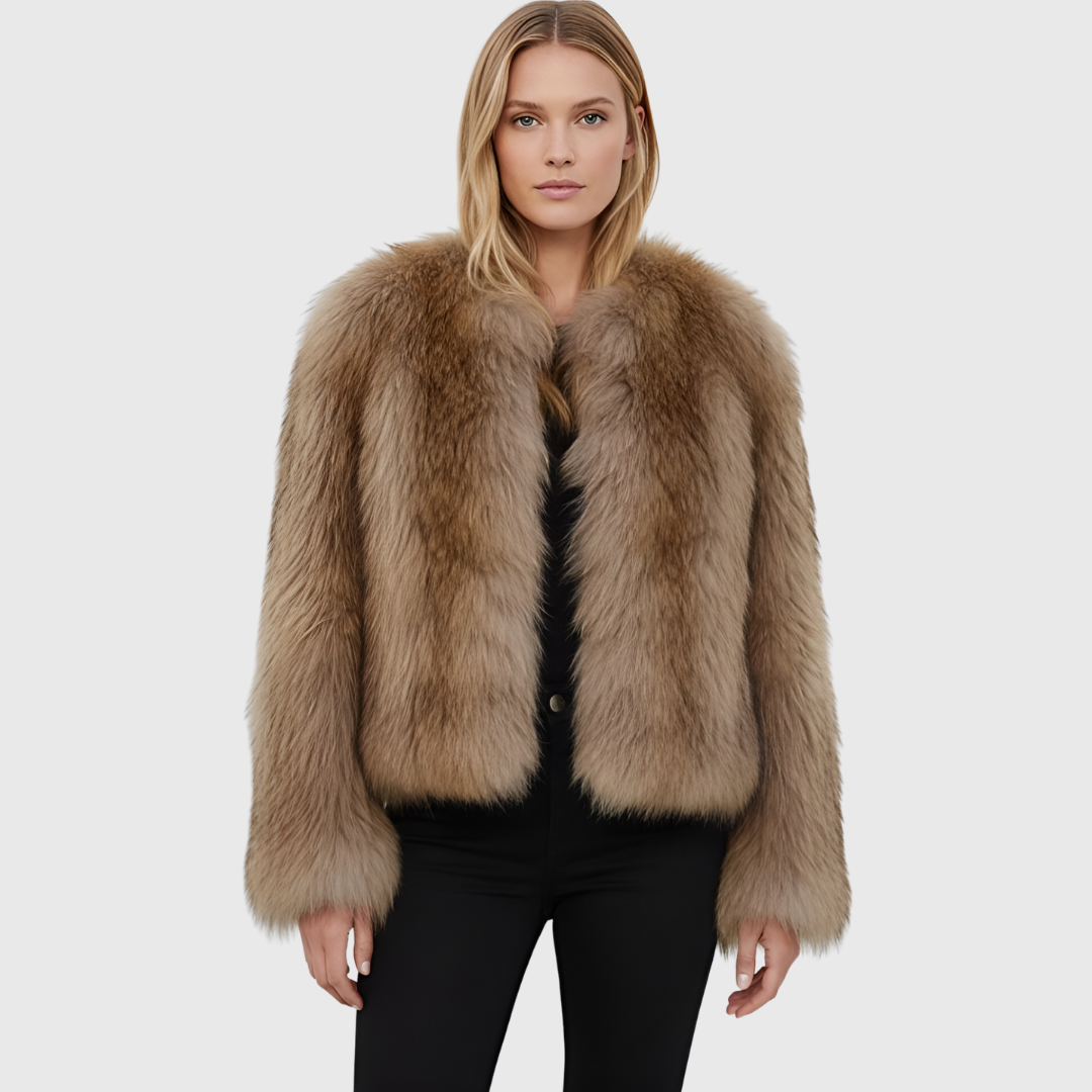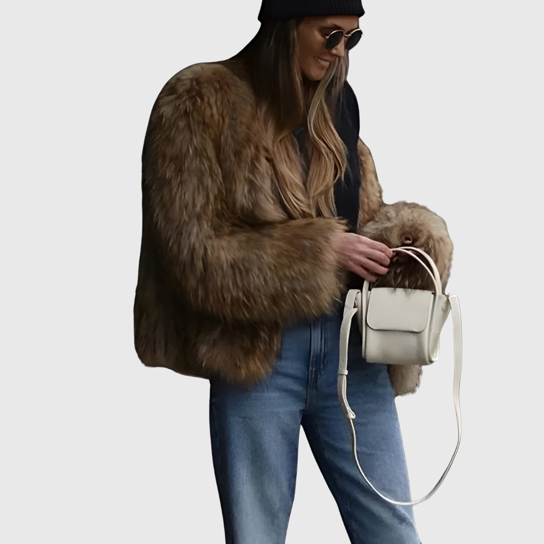 El abrigo de invierno para mujer con cuello vuelto combina un diseño actual con textura suave.