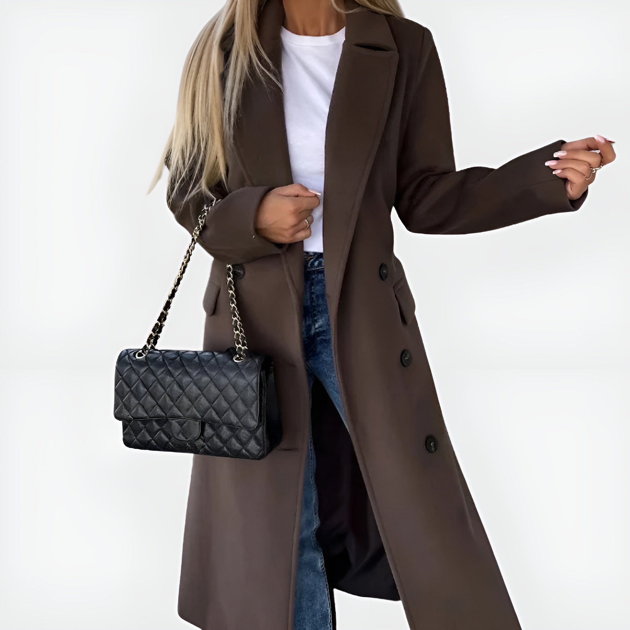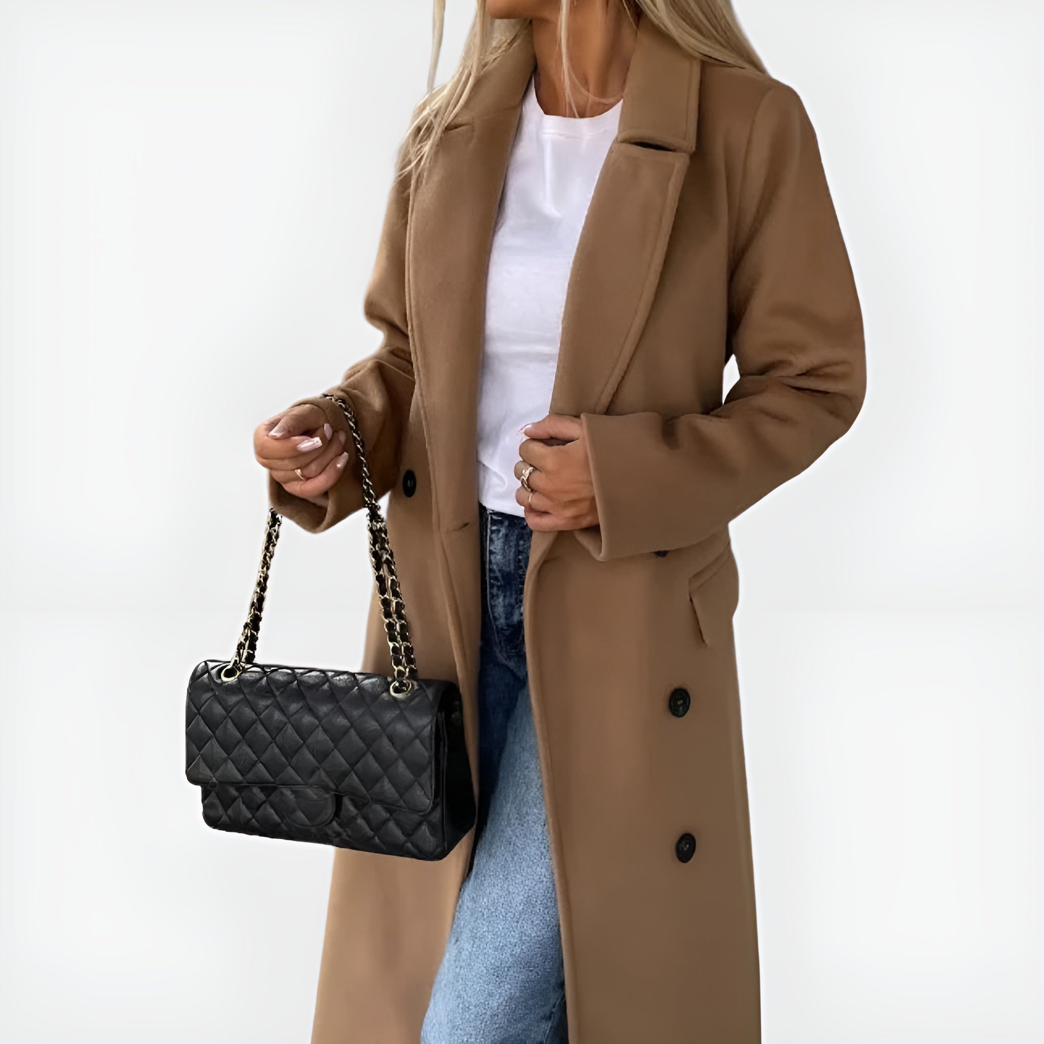 Este invierno, combina estilo y funcionalidad con el abrigo largo cruzado para mujer, un diseño clásico pensado para los días fríos.